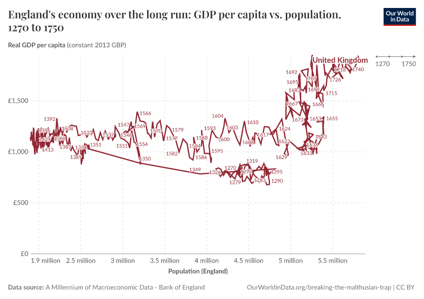 Max Roser (2020) - “Breaking out of the Malthusian trap: How pandemics allow us to understand why our ancestors were stuck in poverty” Published online at OurWorldinData.org. Retrieved from: 'https://gfs-wave-2-new.owid.pages.dev:8789/20260305-101825/breaking-the-malthusian-trap.html' [Online Resource] (archived on March 5, 2026).BibTeX citation