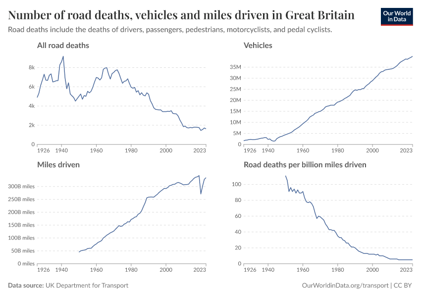 Hannah Ritchie (2025) - “How Britain built some of the world’s safest roads” Published online at OurWorldinData.org. Retrieved from: 'https://gfs-wave-2-new.owid.pages.dev:8789/20260323-161325/britain-safest-roads-history.html' [Online Resource] (archived on March 23, 2026).BibTeX citation