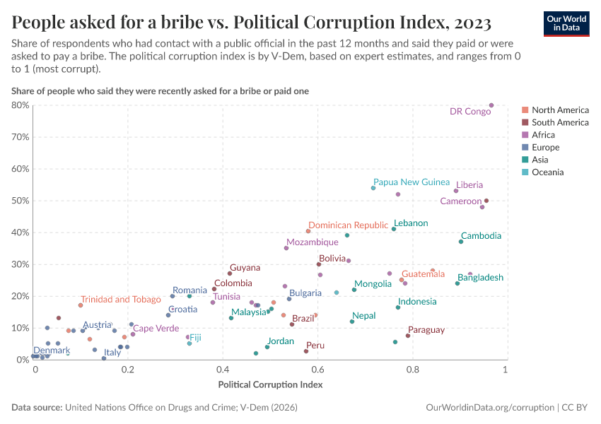 Bastian Herre, Veronika Samborska, and Esteban Ortiz-Ospina (2016) - “Corruption” Published online at OurWorldinData.org. Retrieved from: 'https://gfs-wave-2-new.owid.pages.dev/corruption' [Online Resource]BibTeX citation