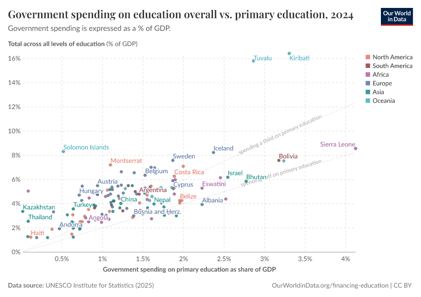 Max Roser and Esteban Ortiz-Ospina (2016) - “Education Spending” Published online at OurWorldinData.org. Retrieved from: 'https://gfs-wave-2-new.owid.pages.dev/financing-education' [Online Resource]BibTeX citation