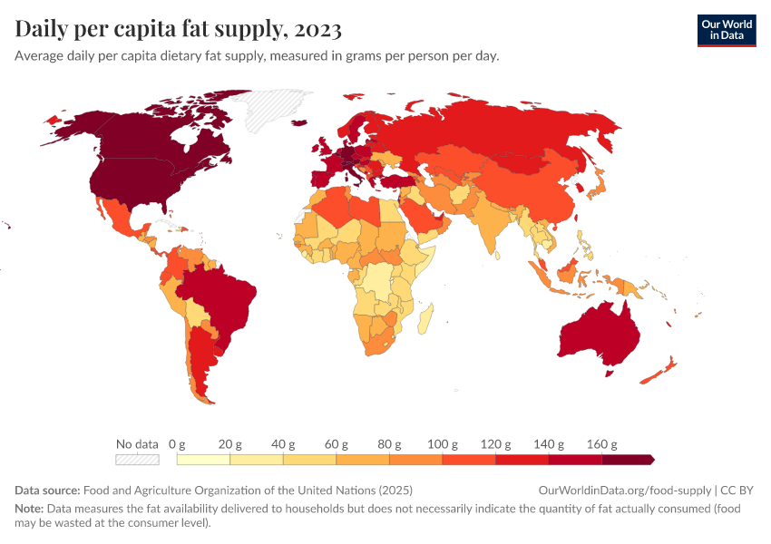 World map of fat supply