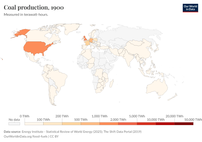 “Data Page: Coal production”, part of the following publication: Hannah Ritchie, Pablo Rosado, and Max Roser (2023) - “Energy”. Data adapted from Energy Institute, The Shift Data Portal. Retrieved from https://gfs-wave-2-new.owid.pages.dev:8789/20260325-120949/grapher/coal-production-by-country.html [online resource] (archived on March 25, 2026).How to cite this data