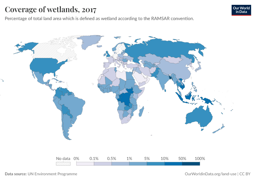 “Data Page: Coverage of wetlands”. Our World in Data (2026). Data adapted from UN Environment Programme. Retrieved from https://gfs-wave-2-new.owid.pages.dev:8789/20260304-094028/grapher/coverage-of-wetlands.html [online resource] (archived on March 4, 2026).How to cite this data
