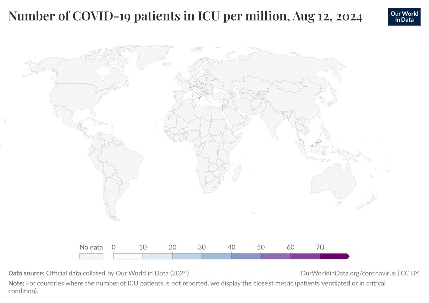 • For countries where the number of ICU patients is not reported, we display the closest metric (patients ventilated or in critical condition).