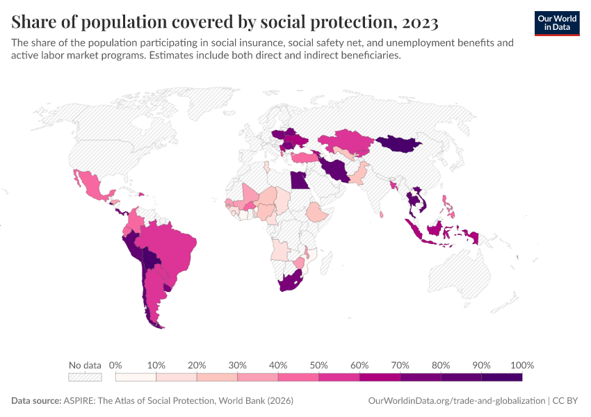 “Data Page: Share of population covered by social protection”. Our World in Data (2026). Data adapted from ASPIRE: The Atlas of Social Protection, World Bank. Retrieved from https://gfs-wave-2-new.owid.pages.dev:8789/20260304-094028/grapher/share-of-population-covered-by-social-protection.html [online resource] (archived on March 4, 2026).How to cite this data