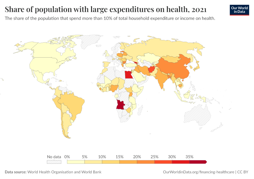 “Data Page: Share of population with large expenditures on health”. Our World in Data (2026). Data adapted from World Health Organisation and World Bank. Retrieved from https://gfs-wave-2-new.owid.pages.dev:8789/20260304-094028/grapher/share-of-population-with-large-household-expenditures-on-health-10pc.html [online resource] (archived on March 4, 2026).How to cite this data