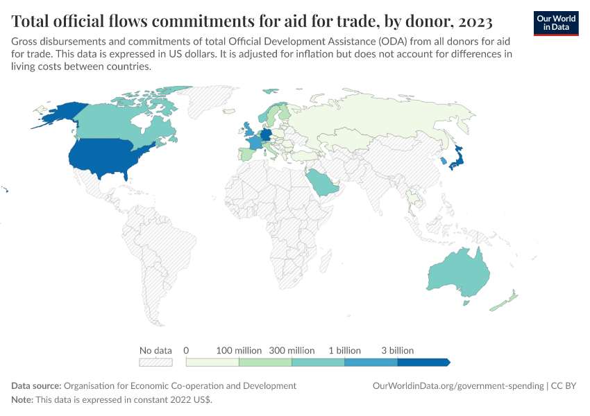 “Data Page: Total official flows commitments for aid for trade, by donor”. Our World in Data (2026). Data adapted from Organisation for Economic Co-operation and Development. Retrieved from https://gfs-wave-2-new.owid.pages.dev:8789/20260304-094028/grapher/total-oda-for-aid-for-trade-by-donor.html [online resource] (archived on March 4, 2026).How to cite this data