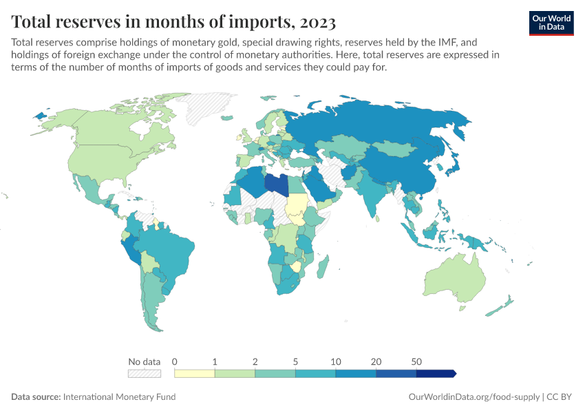 “Data Page: Total reserves in months of imports”. Our World in Data (2026). Data adapted from International Monetary Fund. Retrieved from https://gfs-wave-2-new.owid.pages.dev:8789/20260304-094028/grapher/total-reserves-in-months-of-imports.html [online resource] (archived on March 4, 2026).How to cite this data