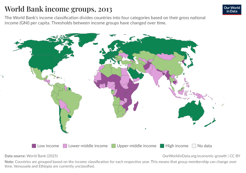 “Data Page: World Bank income groups”, part of the following publication: Max Roser, Bertha Rohenkohl, Pablo Arriagada, Joe Hasell, Hannah Ritchie, and Esteban Ortiz-Ospina (2023) - “Economic Growth”. Data adapted from World Bank. Retrieved from https://gfs-wave-2-new.owid.pages.dev:8789/20260304-094028/grapher/world-bank-income-groups.html [online resource] (archived on March 4, 2026).