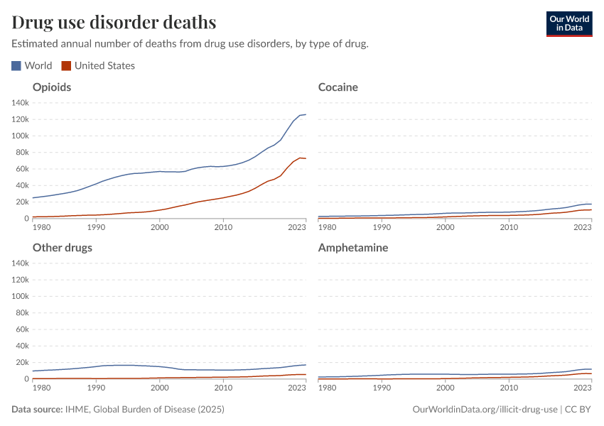 Hannah Ritchie, Pablo Arriagada, and Max Roser (2022) - “Opioids, Cocaine, Cannabis, and Other Illicit Drugs” Published online at OurWorldinData.org. Retrieved from: 'https://gfs-wave-2-new.owid.pages.dev/illicit-drug-use' [Online Resource]BibTeX citation