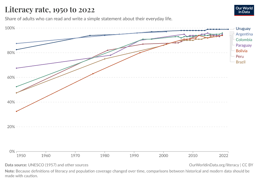 Latin America has made huge improvements in literacy in the last century