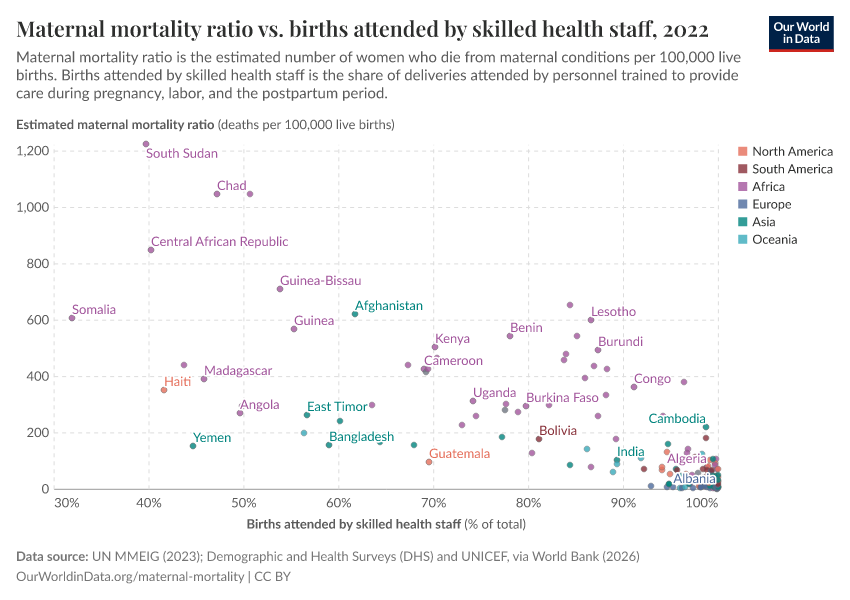 On this page, we present global data and research on maternal mortality — pregnancy-related death — how it varies around the world, how much it has been reduced over time, and what we can do to reduce the risk of pregnancy-related death further.