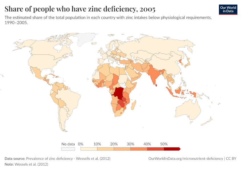 In many high-income countries, under ten percent of the population have zinc deficiency.
