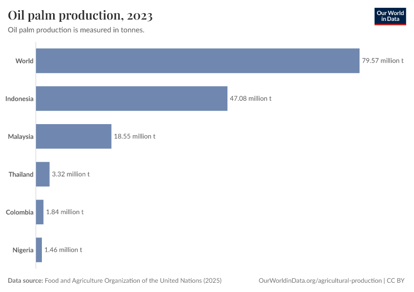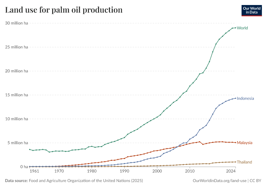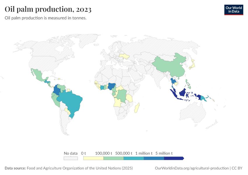 Hannah Ritchie (2021) - “Palm Oil” Published online at OurWorldinData.org. Retrieved from: 'https://gfs-wave-2-new.owid.pages.dev:8789/20260306-182349/palm-oil.html' [Online Resource] (archived on March 6, 2026).BibTeX citation