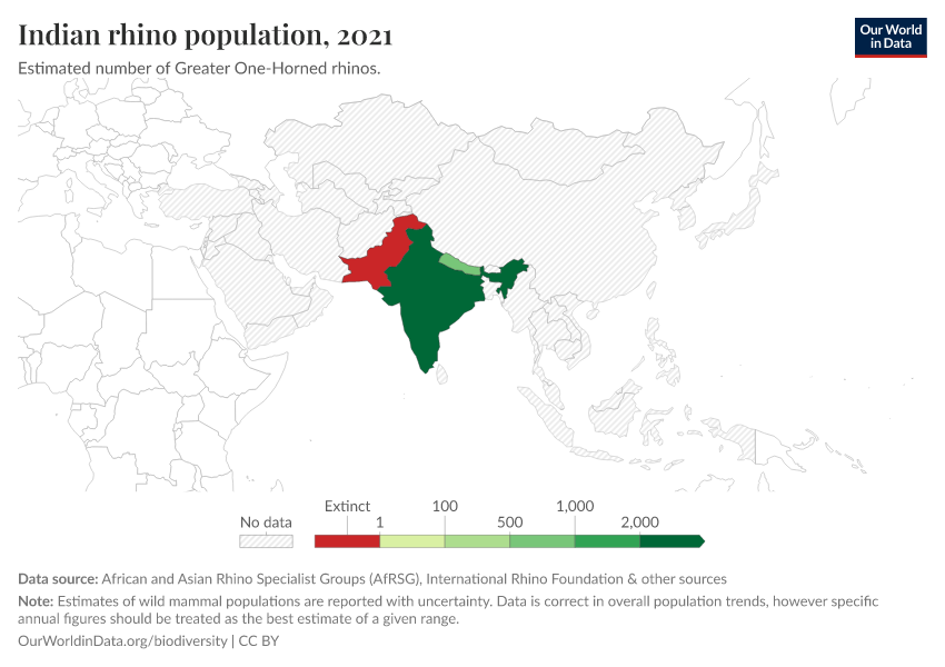 Hannah Ritchie (2022) - “The state of the world's rhino populations” Published online at OurWorldinData.org. Retrieved from: 'https://gfs-wave-2-new.owid.pages.dev:8789/20260305-102620/rhino-populations.html' [Online Resource] (archived on March 5, 2026).BibTeX citation