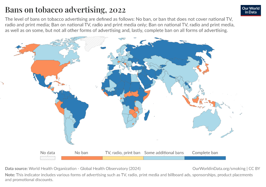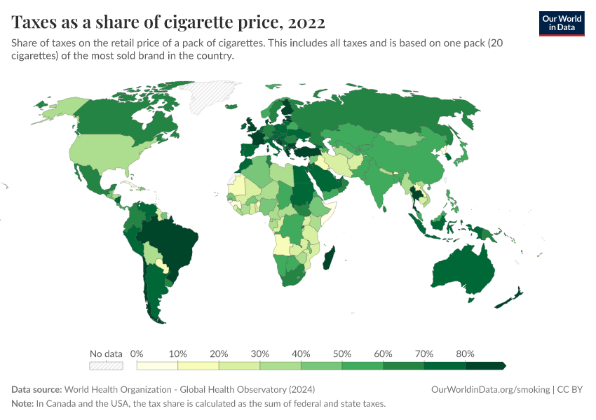 Hannah Ritchie and Max Roser (2023) - “Smoking” Published online at OurWorldinData.org. Retrieved from: 'https://gfs-wave-2-new.owid.pages.dev/smoking' [Online Resource]BibTeX citation