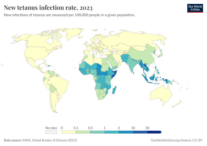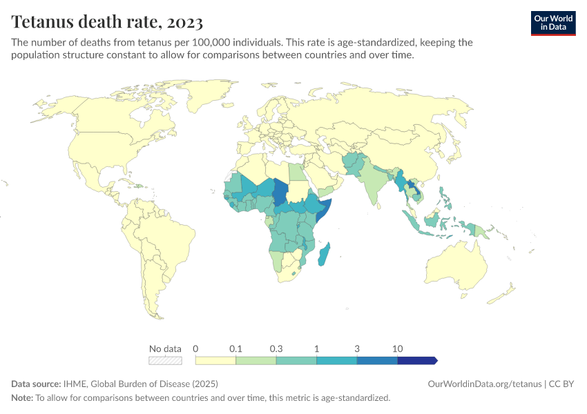 Hannah Behrens, Sophie Ochmann, Bernadeta Dadonaite, and Max Roser (2019) - “Tetanus” Published online at OurWorldinData.org. Retrieved from: 'https://gfs-wave-2-new.owid.pages.dev/tetanus' [Online Resource]BibTeX citation