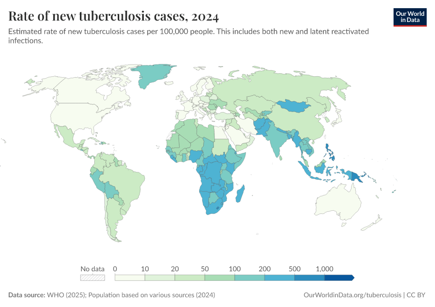 Saloni Dattani, Fiona Spooner, Hannah Ritchie, and Max Roser (2023) - “Tuberculosis” Published online at OurWorldinData.org. Retrieved from: 'https://gfs-wave-2-new.owid.pages.dev/tuberculosis' [Online Resource]BibTeX citation